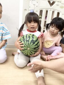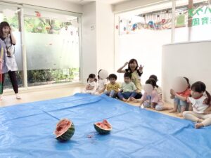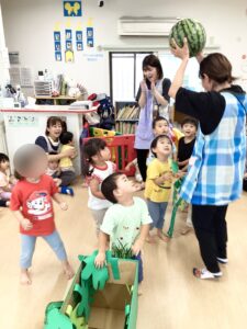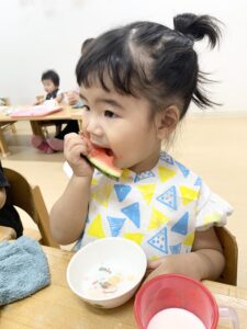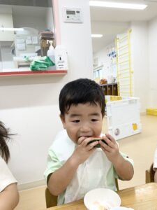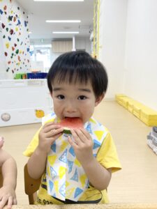 と上手にスイカをたくさん食べて嬉しそうな子どもたちでした^o^