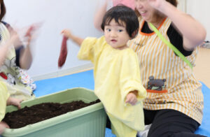 野菜を植える土は、公園のお砂とはまた違う感触!