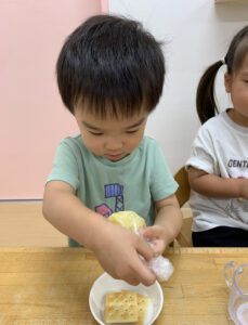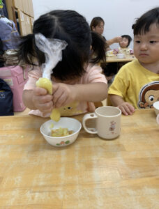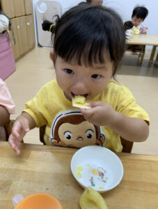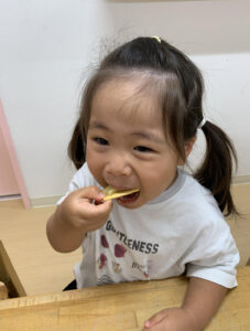 午後のおやつはクッキングでお芋クラッカーサンドを作りました。