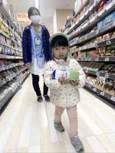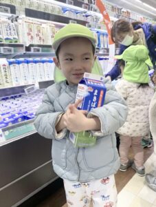 スーパーに到着すると、「牛乳どこ??」とキョロキョロ探す子どもたち!