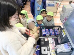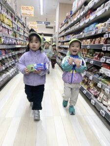 2、3歳児のお友だちだけでお買い物に行きました。
