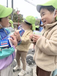 先生に渡しに行く時の子どもたちの顔が、目がキラキラしていて輝いていました。みんなで買ってこれた達成感を感じることができましたよ。